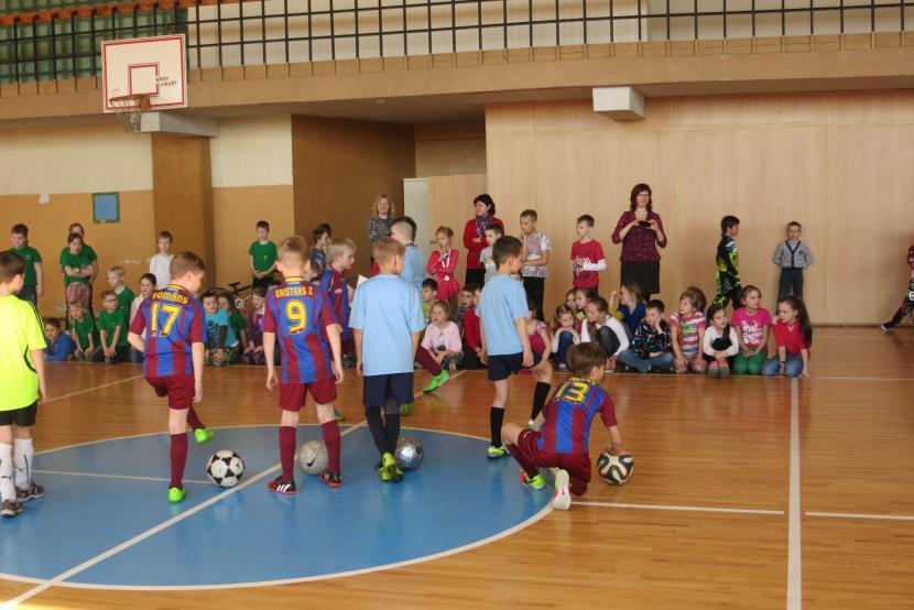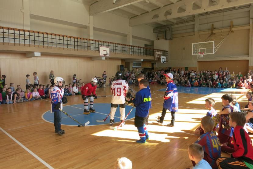 sporta zālē futbola, basketbola, regbija bumbas un hokeja ripas pavēlnieku stunda.
