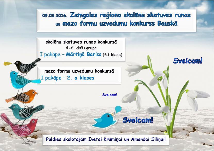 Zemgales reģiona skolēnu skatuves runas un mazo formu uzvedumu konkurss Bauskā (09.03.2016, trešdien) |