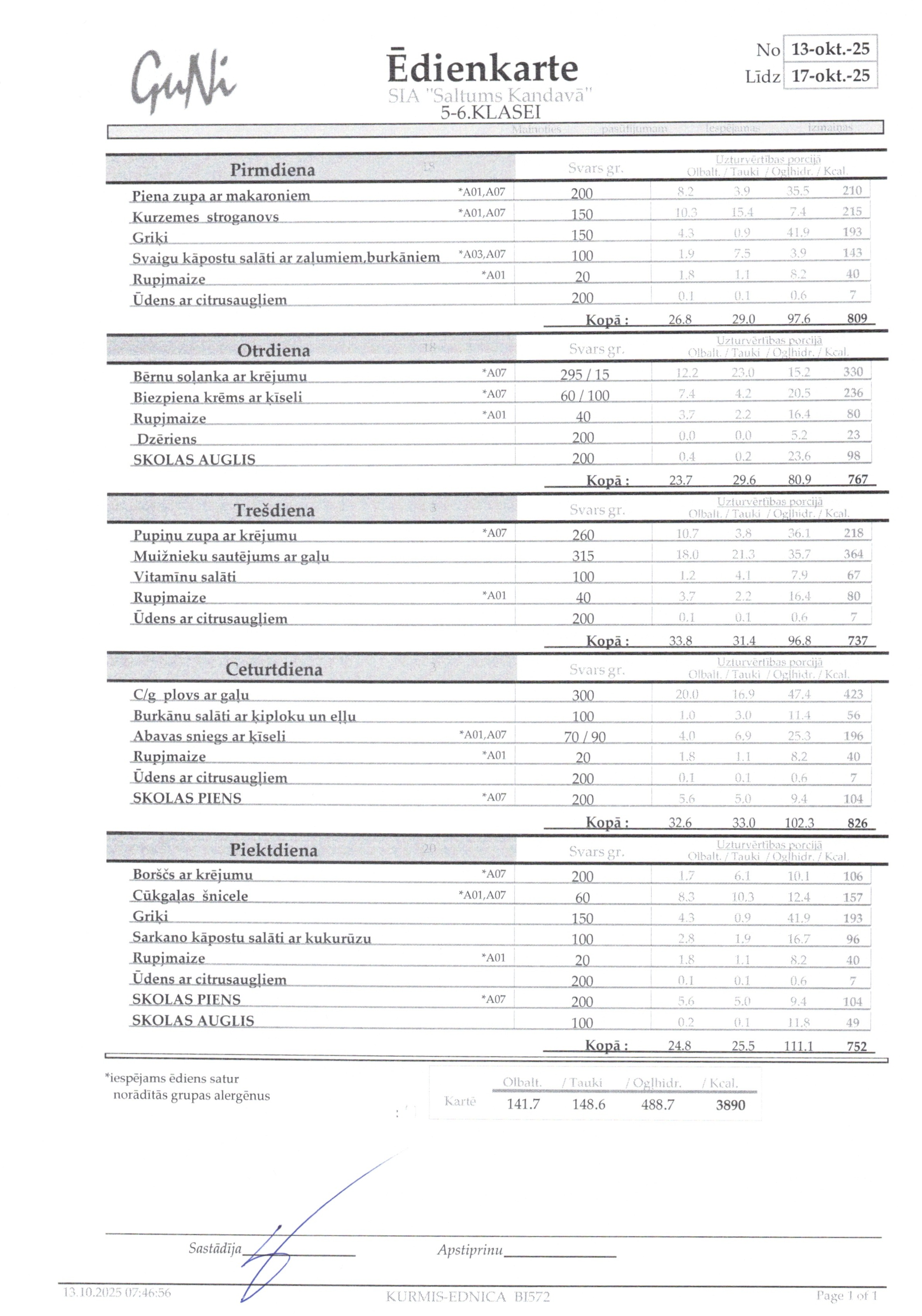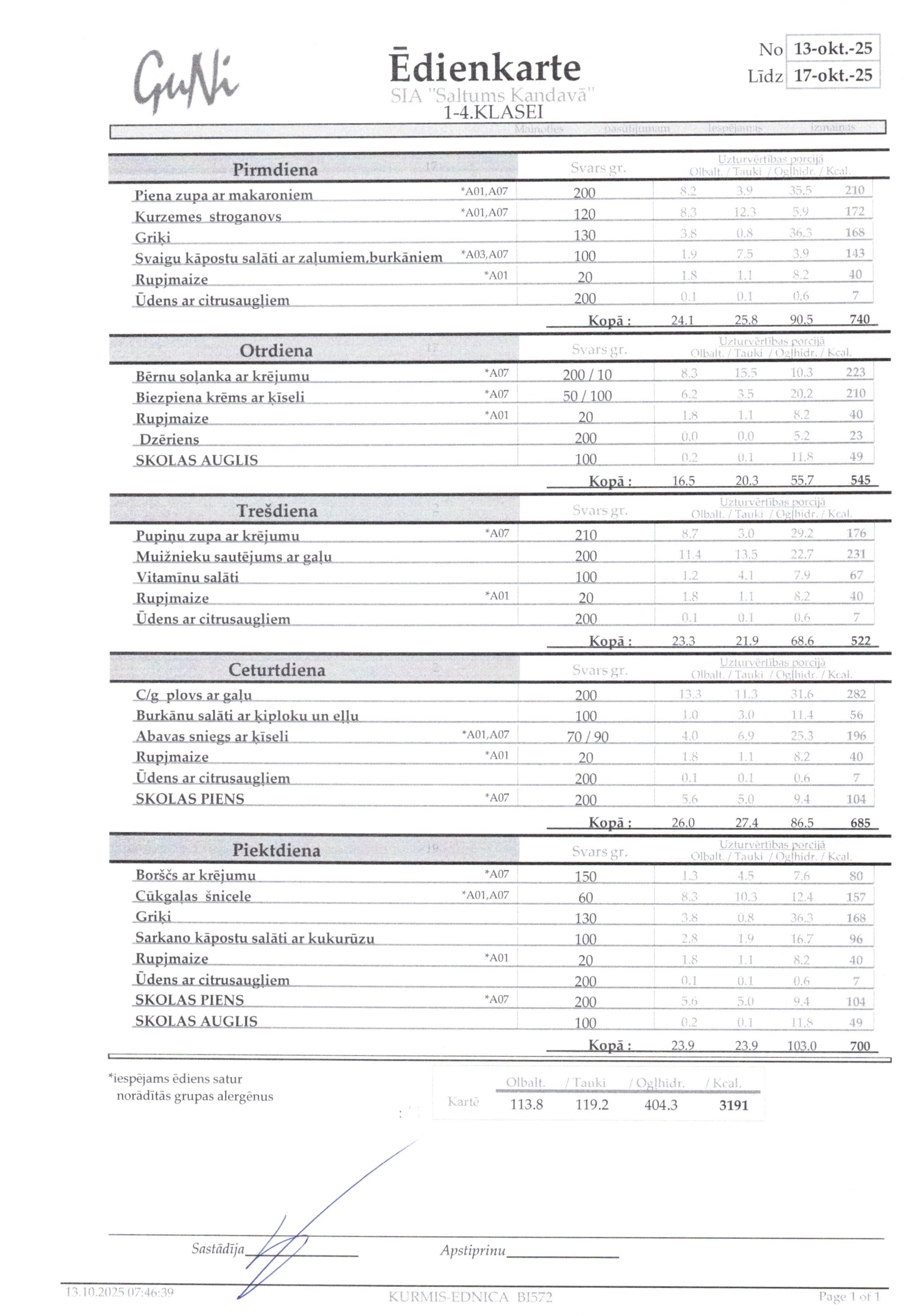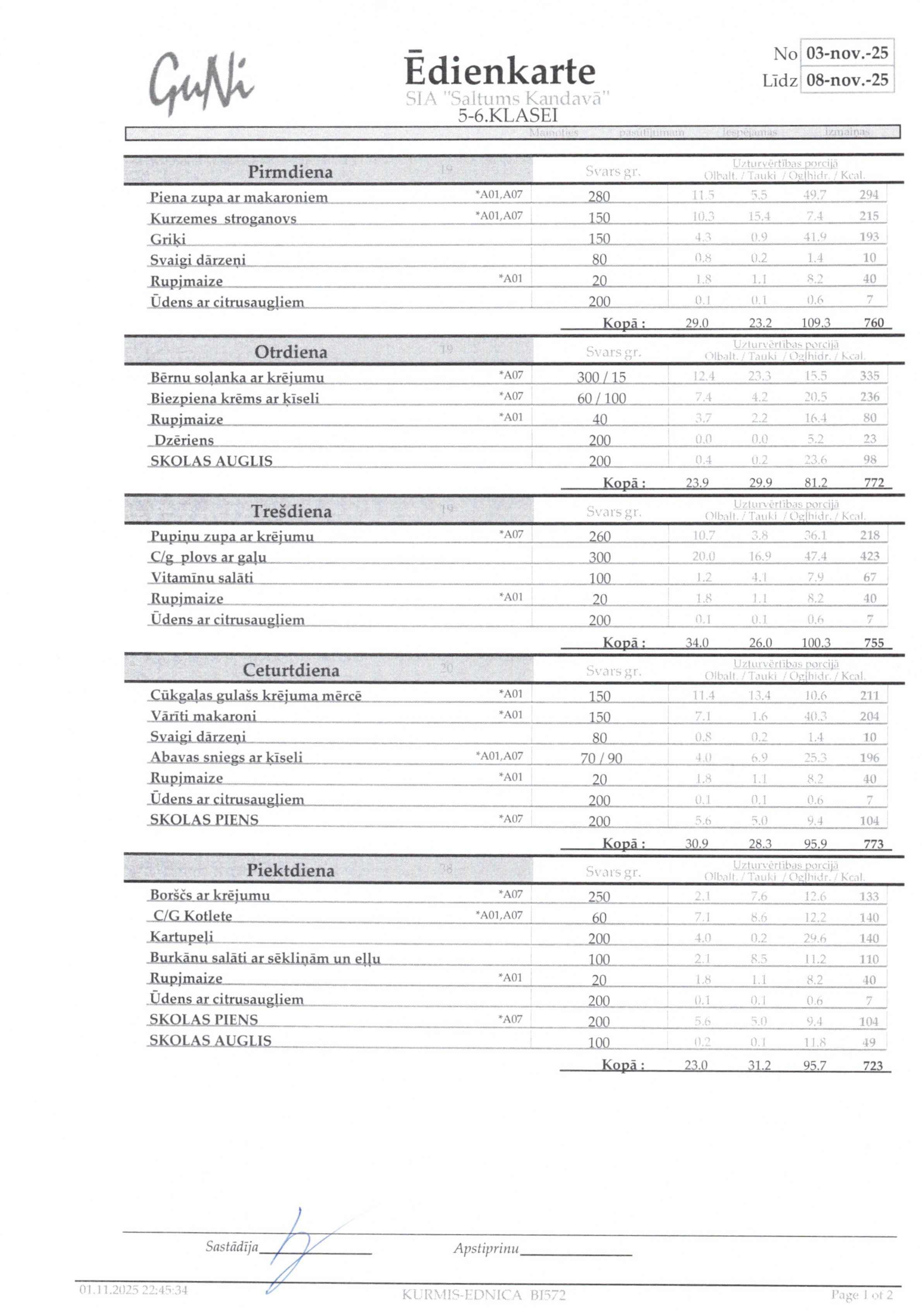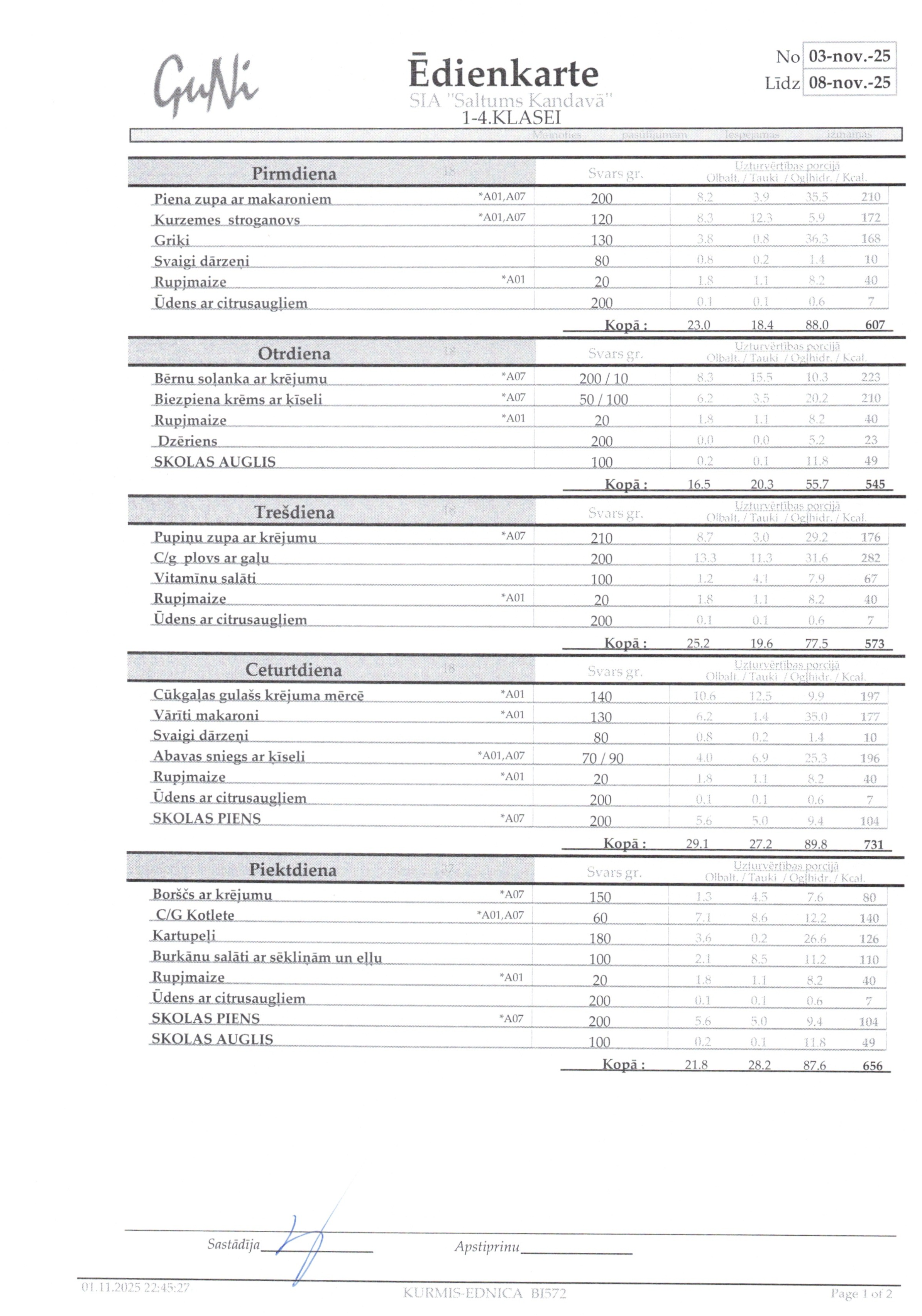 Jelgavs 4. sākumskolas ēdienkarte: |